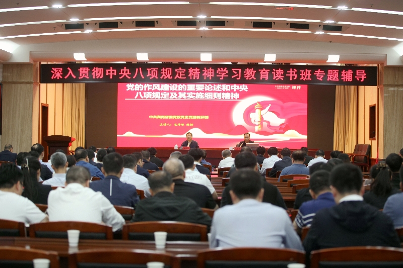 4月24日,省发改委举行深入贯彻中央八项规定精神学习教育读书班暨理论学习中心组2025第4次集体学习,省委党校龙秀雄教授作专题辅导,紧扣贯彻中央八项规定精神开展学习研讨。委党组书记、主任黄东红出席并作总结讲话。