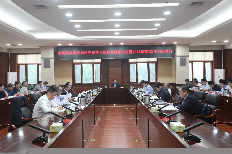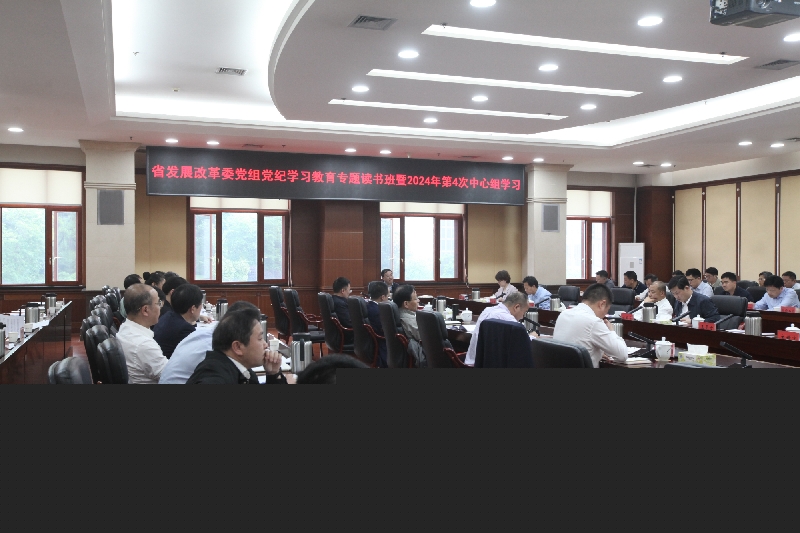 4月25日,省发改委党组开展委党组党纪学习教育专题读书班暨2024年第4次中心组学习,省发改委党组书记、主任黄东红领学《中国共产党纪律处分条例》违反廉洁纪律和群众纪律的处分等内容,就“深入学习领会习近平法治思想,严格贯彻落实《中国共产党纪律处分条例》”开展研讨学习。