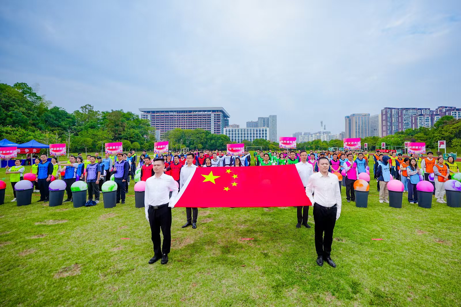 秋高气爽、风和日丽,10支代表队高举队牌,齐呼口号有序入场,国旗队迈着整齐有力的步伐登场,庄严的国歌声响彻在训练场上空。运动会在有氧鼓激昂的鼓点和轻松愉悦的韵律中拉开序幕。