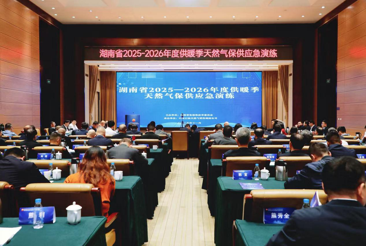为深入贯彻党的二十大和二十届二中、三中、四中全会精神,全面落实习近平总书记关于能源保障和安全工作的重要指示批示精神,切实做好今冬明春供暖季天然气保供工作,着力提升我省应对天然气突发事件的综合协调水平与快速反应能力,11月7日,省发改委会同天然气保供成员单位组织开展湖南省2025—2026年度供暖季天然气保供应急演练,省发改委党组成员、省能源局局长汤吉鸿指挥演练并讲话。
