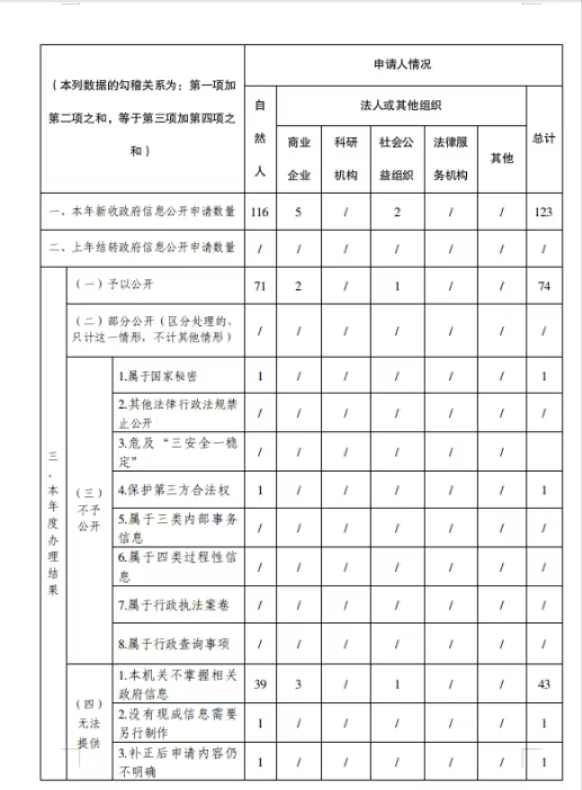 公开申请123件,全部按程序及时答复。政务服务事项办理,86项政务服务事项实现全程在线办理,年度办件量达3015件。